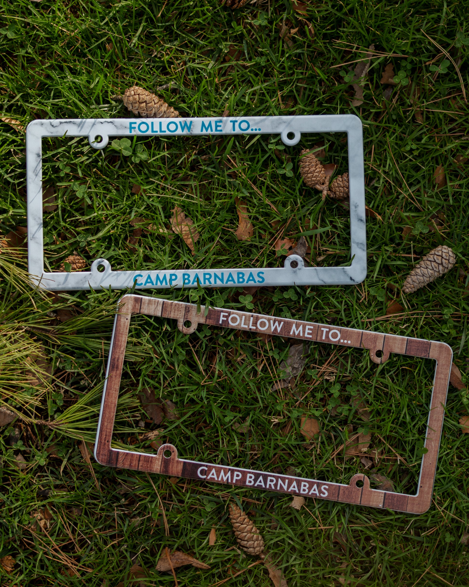 Stop traffic with these FUN license plates! Get one in a trendy "marble" or a rustic "wood".