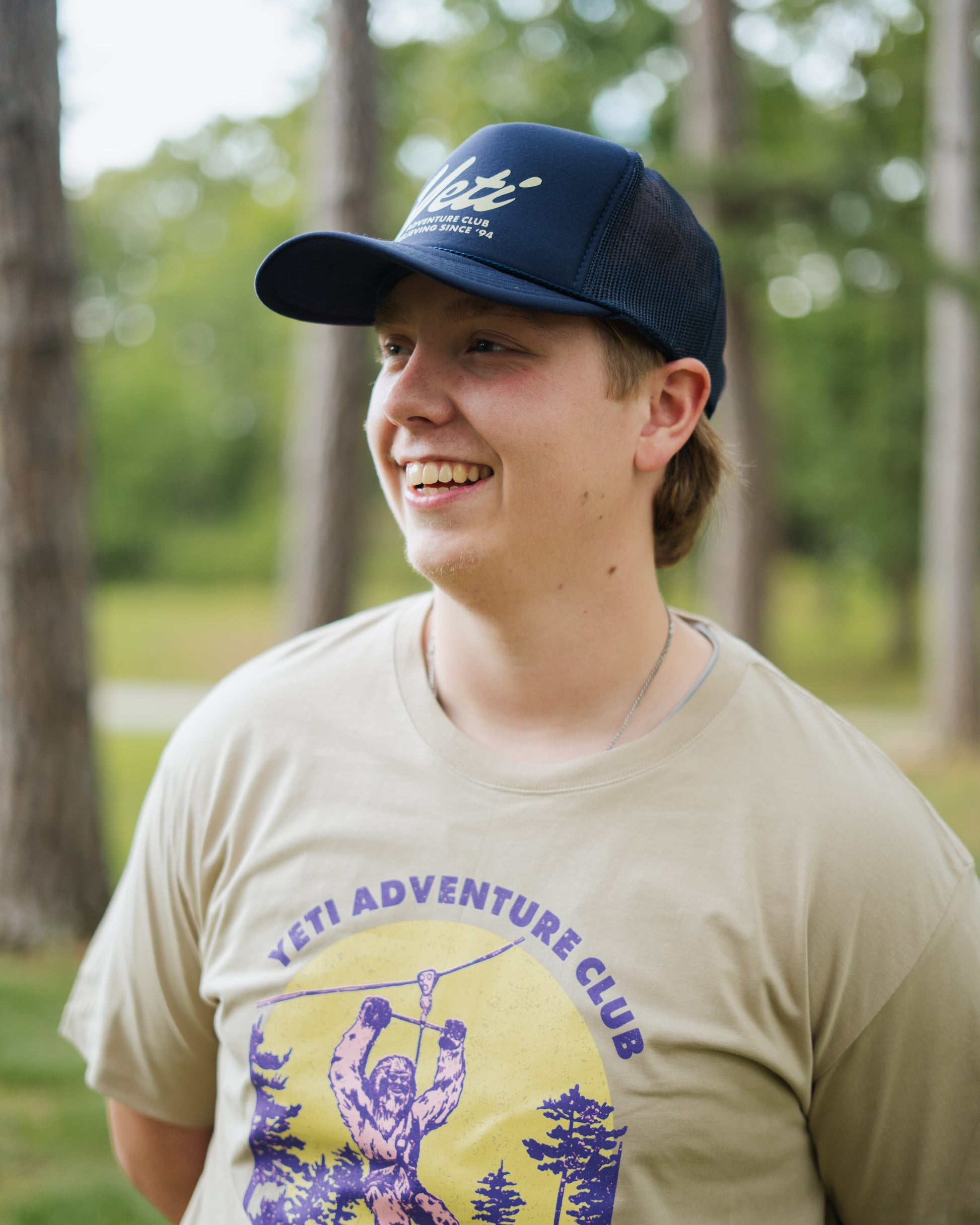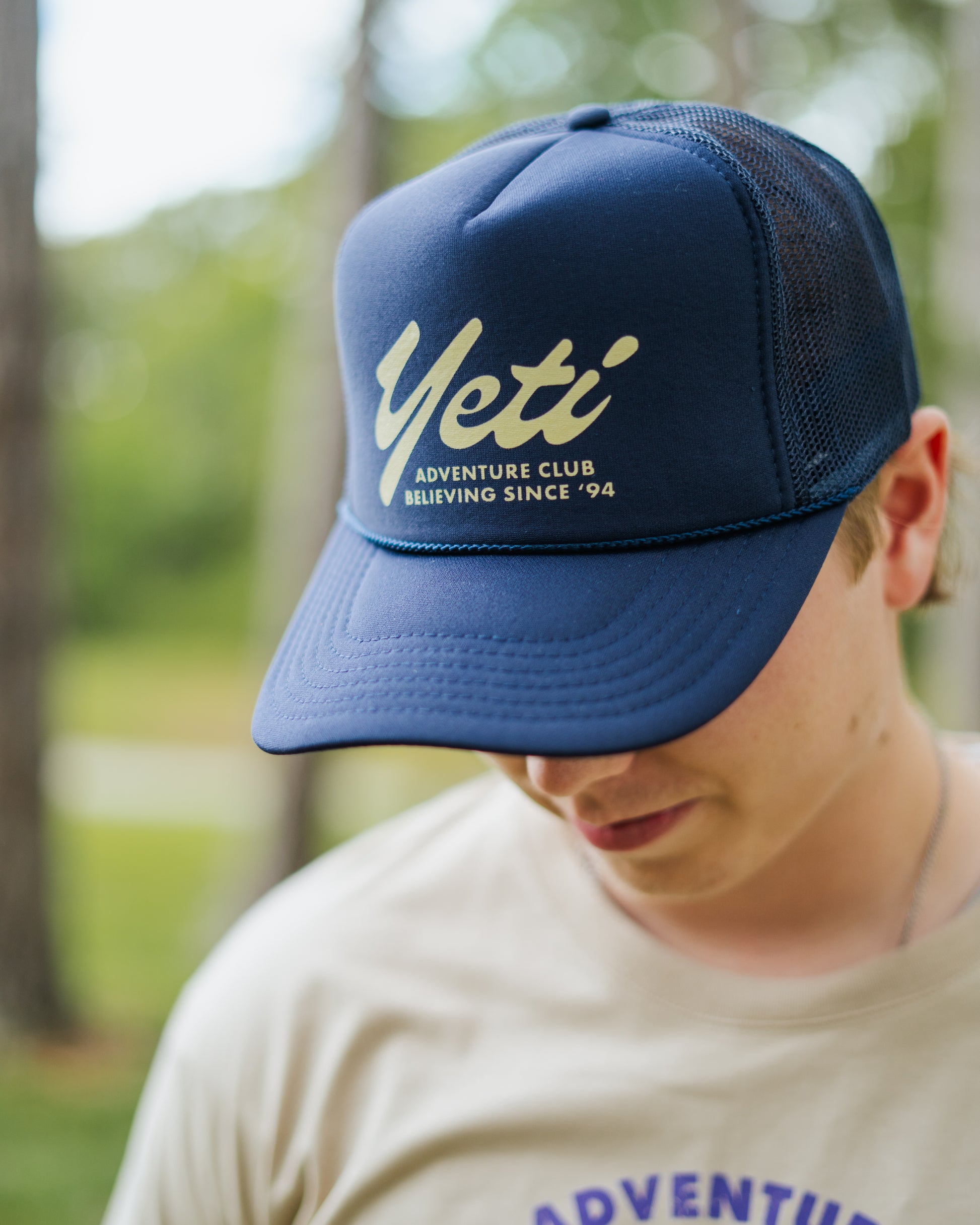 This navy trucker hat features breathable mesh, a classic fit, and bold banana cream ink that reads “YETI Adventure Club – Believing Since 1994.” Made for adventurers, dreamers, and YETI Believers. Snag this exclusive Camp Barnabas hat today!